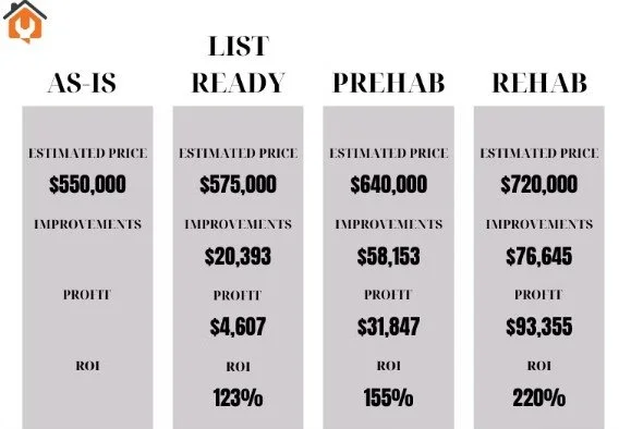 When cosmetic upgrades won’t be enough to move the needle, and your neighborhood comparable sales support a renovation, it’s worth pricing out how much a renovation would cost, and how much additional profit it would yield.